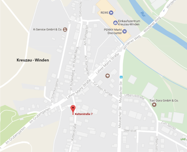 Ortsbeschreibung: Kreuzau liegt südlich von Düren, zwischen Aachen und Köln, am Anfang der Eifel. Ein Naturschutzgebiet mit Wandermöglichkeiten beginnt direkt hinter dem Haus, das in eine dörfliche Siedlung, Winden, eingebunden ist. Einkaufsmöglichkeiten und ein Schwimmbad sind zu Fuß zu erreichen. Die nahe Flusslandschaft, Hügel und Seen gehen über in die bergige Eifel mit Burgen und Sandsteinfelsen. Diese schöne Umgebung lädt zum Auftanken von Ruhe und Kraft ein.